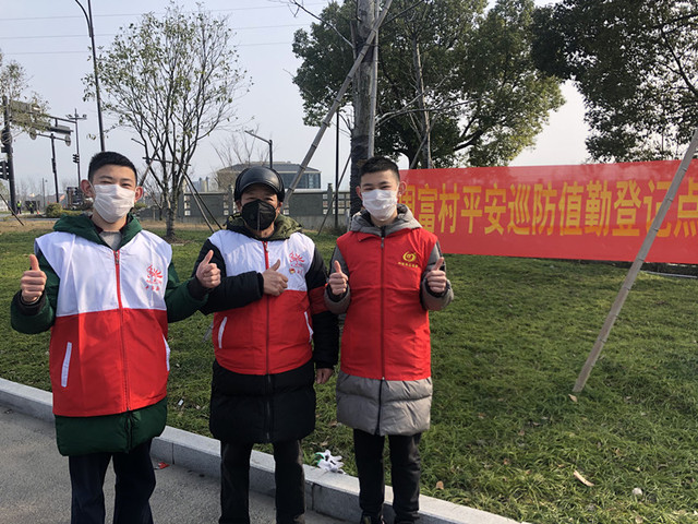 東江嘴村位于雙浦鎮(zhèn)最東面,三面環(huán)江。防疫工作啟動后,東江嘴村一共設立4個點位,每天安排志愿者24小時執(zhí)勤,做好村子進出人員的檢查和登記?!拔覀儓?zhí)勤時間是上午7點到下午4點,一天9個小時,中午吃飯是家里送來的便餐?!标惙f濤介紹,“前幾天下雨,進出以本村村民為主。昨天開始放晴,濱江、蕭山方向來釣魚的人很多,我們都一一勸回了?!遍_學時間延期,上初二的陳穎濤決定每天陪爸爸一起在江邊站崗?!半m然很冷,但是比起晚上執(zhí)勤的叔叔伯伯,我們算很輕松了?!?/p>