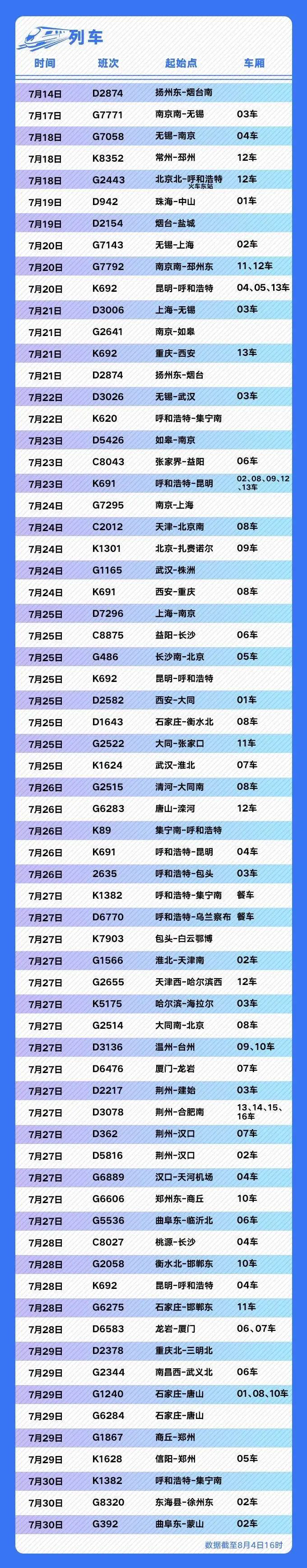 近期,全國疫情呈國內(nèi)零星散發(fā)和局部聚集性疫情交織疊加暴發(fā)態(tài)勢。截至8月5日7時,全國疫情高風險地區(qū)5個,中風險地區(qū)160個。全國共有17個省份報告新冠病毒感染病例近500例,其中有不少感染者曾乘坐飛機、列車出行。市新冠肺炎疫情防控指揮部緊急提醒:請近期乘坐過相關(guān)航班和列車的人員立即主動上報。