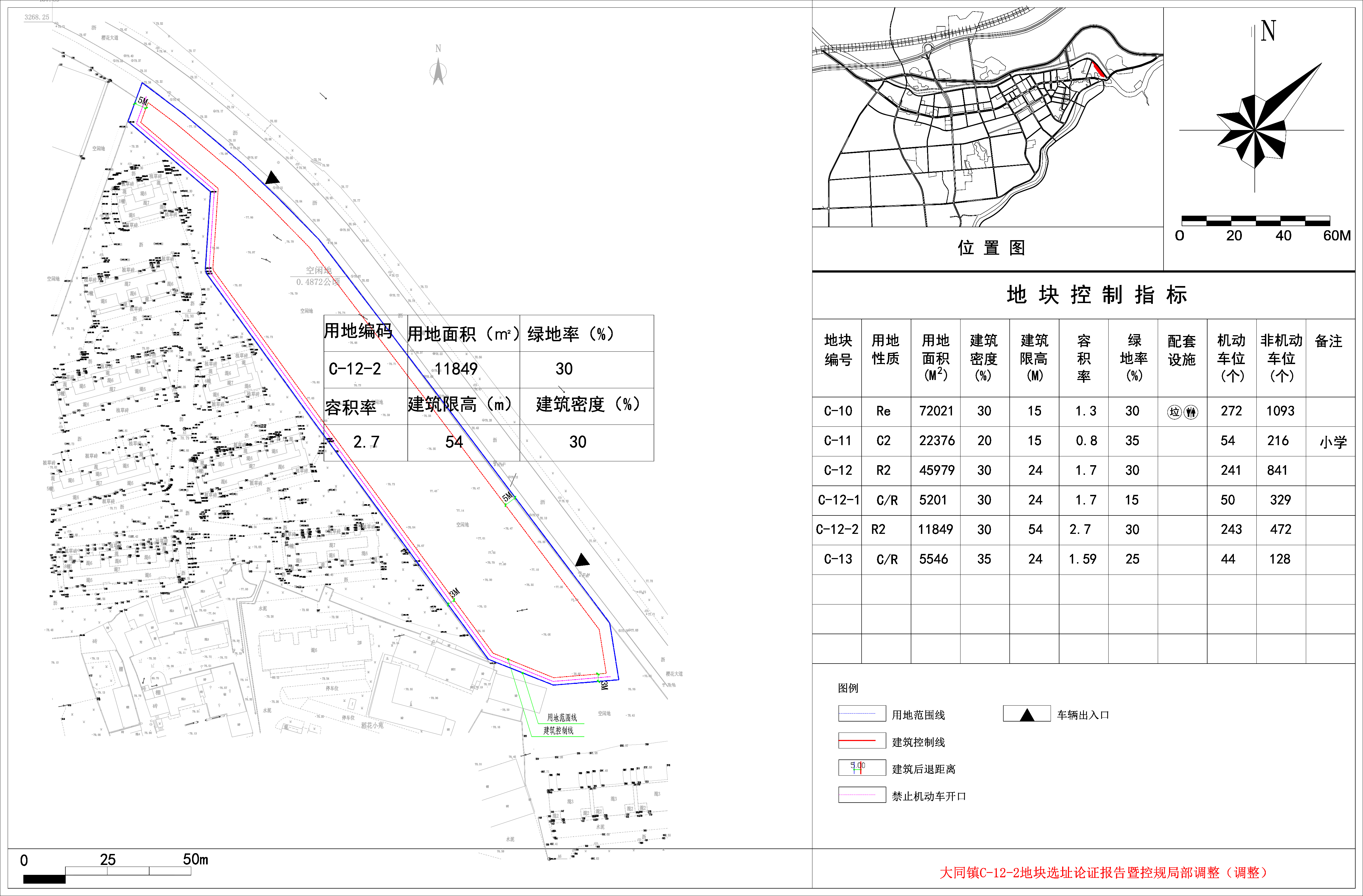 本項(xiàng)目基地位于大同鎮(zhèn)大同村。規(guī)劃用地性質(zhì)為二類居住用地(R2)。地塊用地面積約為11849平方米,容積率≤2.7,建筑密度≤30%,建筑限高≤54m,綠地率≥30%。