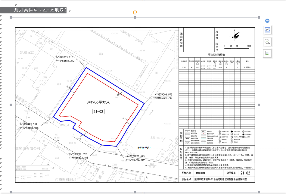 乾潭鎮(zhèn)21-02地塊位于建德市乾潭鎮(zhèn)城中工業(yè)區(qū),總用地面積1906㎡;規(guī)劃用地性質(zhì)為二類工業(yè)用地(M2),地塊控制指標為:2.0≥容積率≥1.2,52%≥建筑密度≥40%,20%≥綠地率≥10%,建筑高度≤24米。