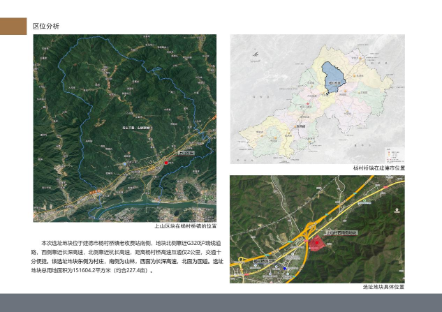 本次選址地塊位于建德市楊村橋鎮(zhèn)老收費(fèi)站南側(cè),地塊北側(cè)靠近G320滬瑞線道路,西側(cè)靠近長深高速,北側(cè)靠近杭長高速,距離楊村橋高速互通僅2公里,交通十分便捷。該選址地塊東側(cè)為村莊,南側(cè)為山林,西面為長深高速,北面為國道。地塊已在建德市高鐵新區(qū)總體規(guī)劃范圍內(nèi),但未進(jìn)行詳細(xì)地塊規(guī)劃,不符合工業(yè)建設(shè)規(guī)劃要求。選址地塊總用地面積為151604.2平方米(約合227.4畝),其中新增地塊面積1712.4平方米。