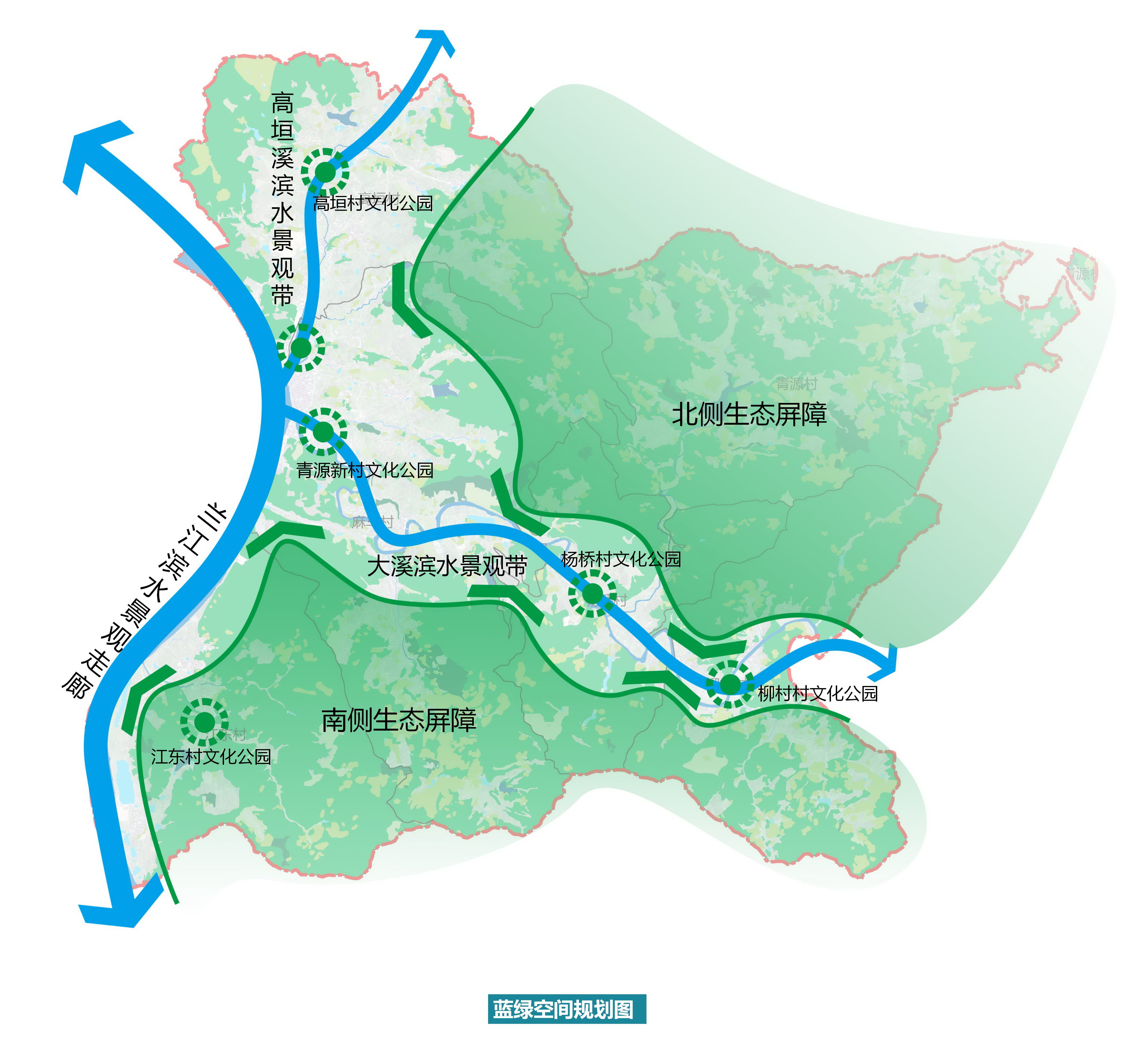 規(guī)劃形成“一廊兩帶、雙屏多點(diǎn)”的藍(lán)綠空間整體格局。