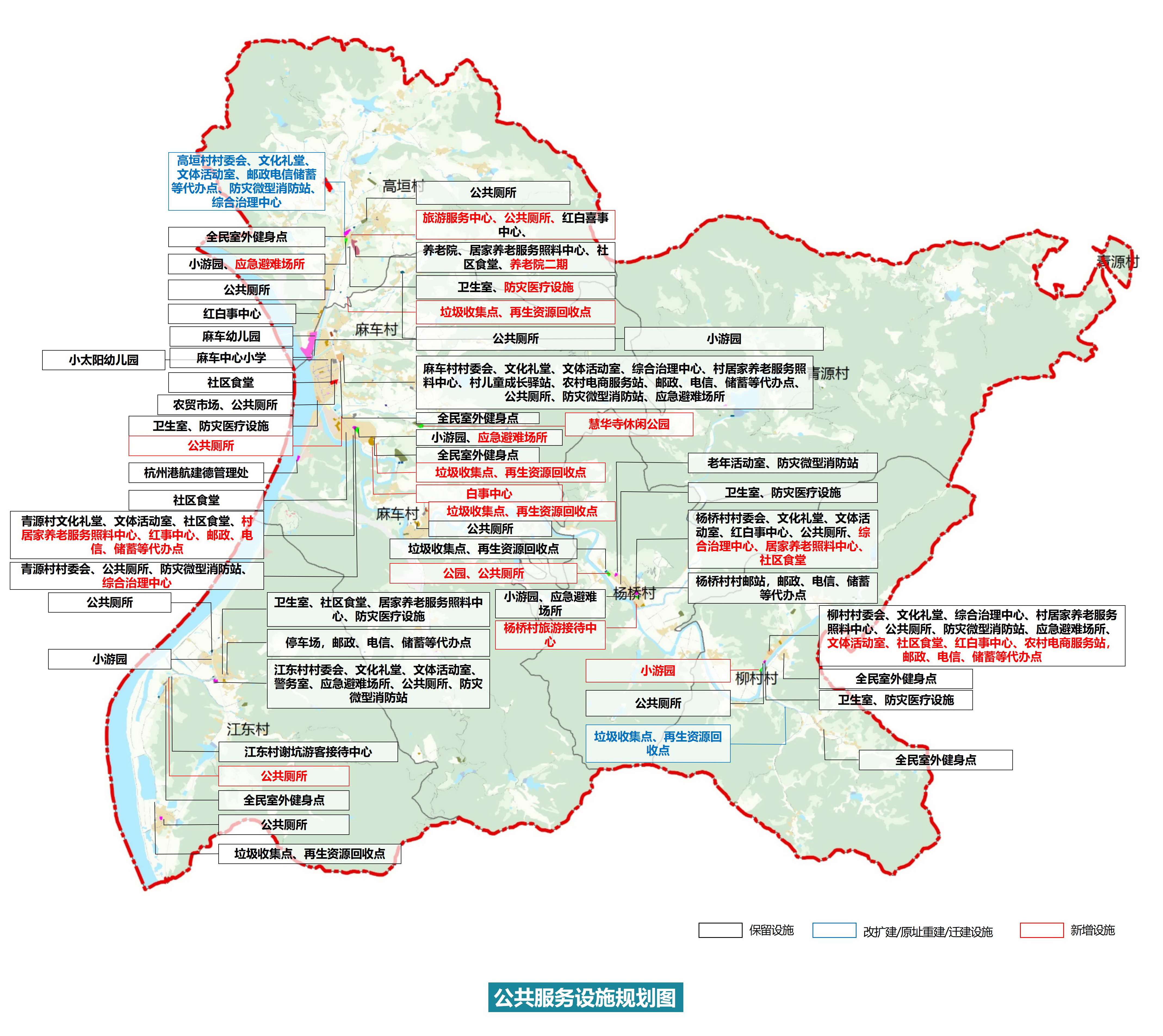 “五點(diǎn)”:結(jié)合鄉(xiāng)村鄰里中心配套保障性服務(wù)設(shè)施,打造高垣、青源、楊橋、柳村、江東服務(wù)點(diǎn)。