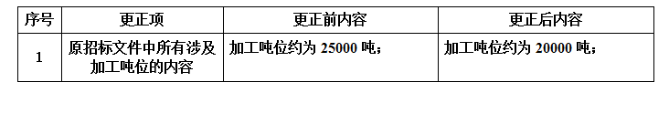 五.更正理由:對招標(biāo)文件中加工噸位的內(nèi)容進(jìn)行更正。
