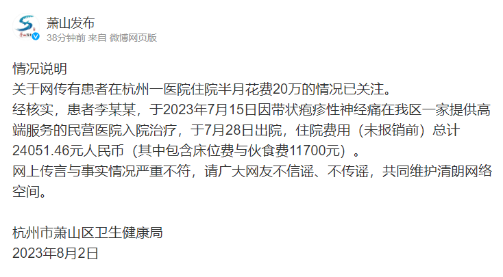 近日,有網(wǎng)民在今日頭條等平臺發(fā)文稱“李某某看病住院半月花費20萬”,引發(fā)網(wǎng)民關(guān)注。