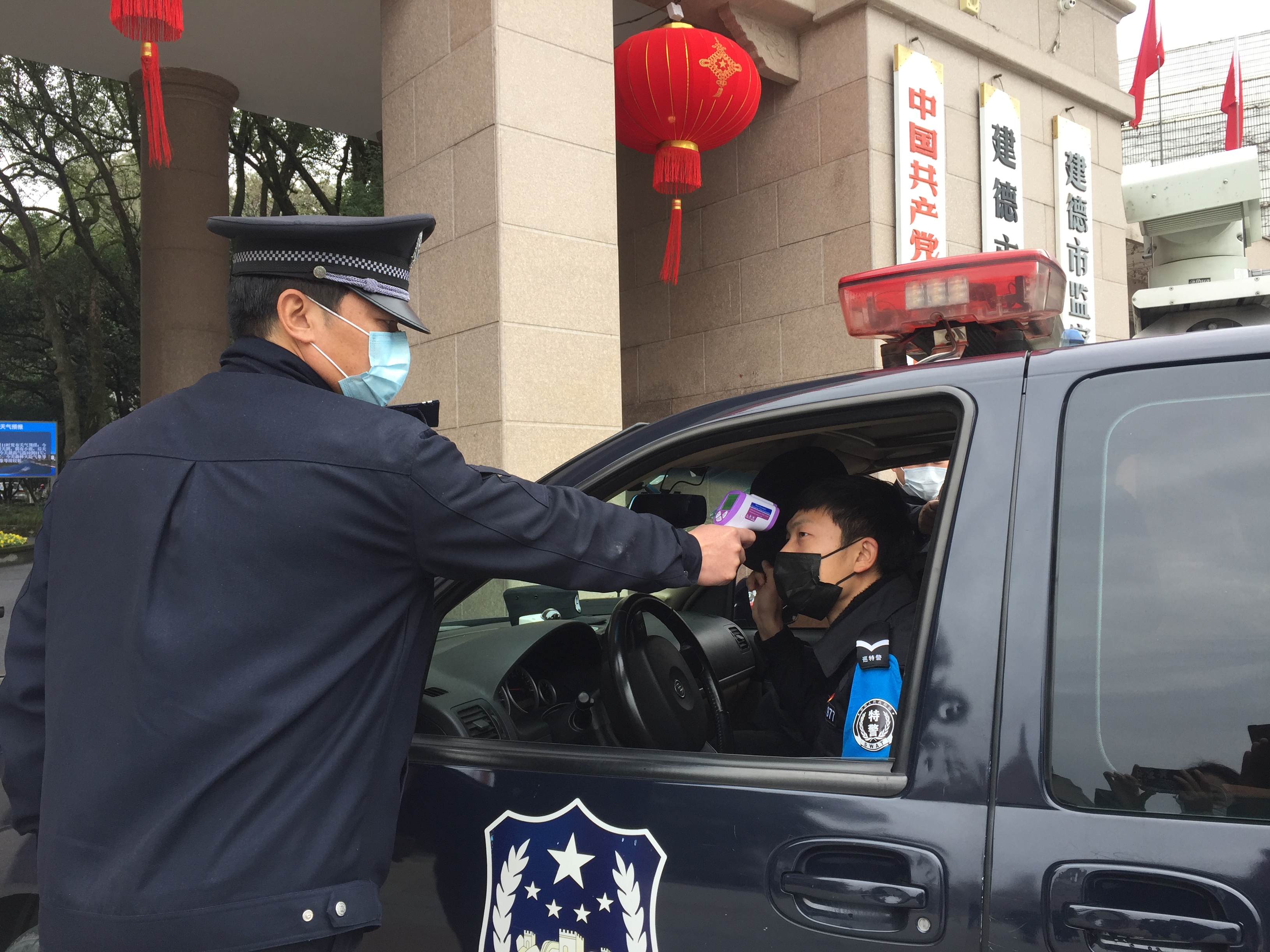 2月3日,市政府大門(mén)口,執(zhí)勤人員對(duì)上班人員進(jìn)行體溫測(cè)量。當(dāng)日迎來(lái)春節(jié)后上班的第一個(gè)工作日,我市各機(jī)關(guān)、企事業(yè)單位繼續(xù)加強(qiáng)疫情防控,對(duì)每一個(gè)返崗人員進(jìn)行體溫測(cè)量、登記造冊(cè),嚴(yán)格篩查預(yù)防疫情傳播。