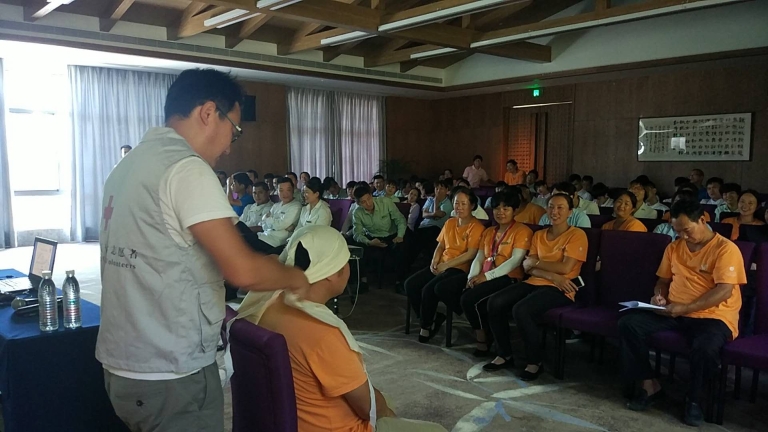 為了提高酒店員工的防災避險意識,普及應急救護知識和技能,梅城鎮(zhèn)紅十字會送教上門,于9月4日下午為建德富春開元芳草地鄉(xiāng)村酒店共計106名前臺員工舉辦了一期應急救護培訓。
