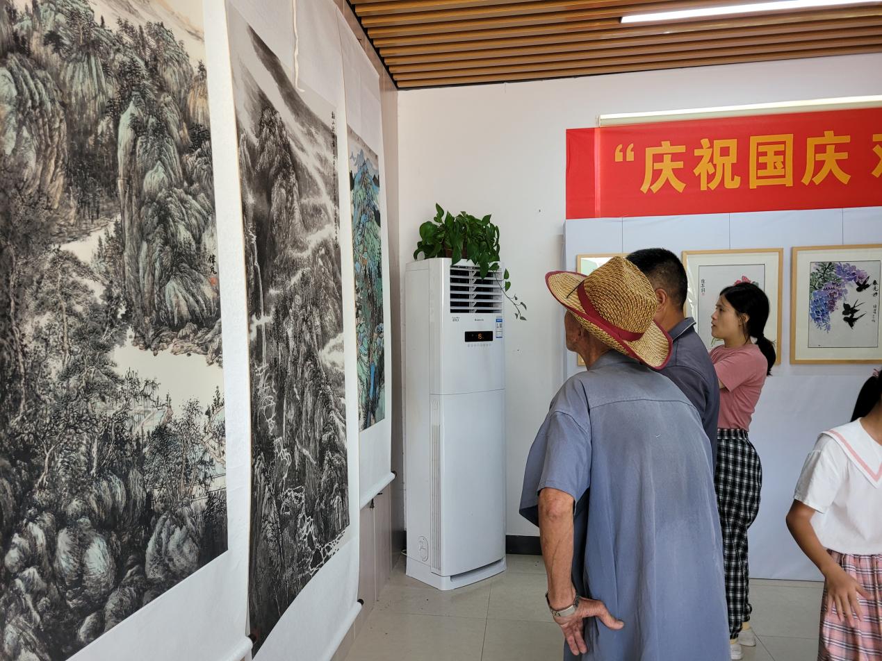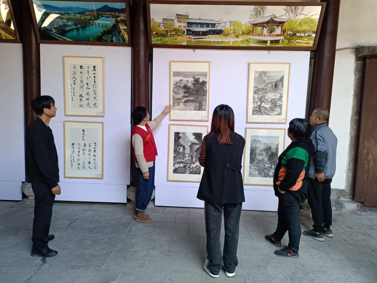 在壽昌鎮(zhèn)城北村文化禮堂,城北村文化禮堂志愿者正在帶領(lǐng)村民參觀鑒賞國畫作品,這是由新安江書畫院的老師們創(chuàng)作的“十里壽昌江”寫生作品,城北村村民曹亮表示,沒想到國畫下的壽昌也如此美麗,這次國畫鑒賞讓我對國畫產(chǎn)生了興趣,希望多舉辦幾次國畫活動。