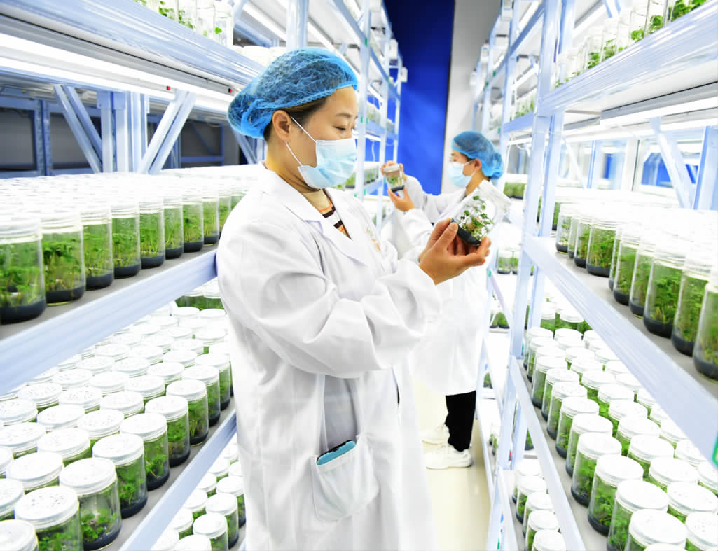 8月12日,在建德市新安種業(yè)有限公司的草莓三級(jí)育苗智能培育溫室里,技術(shù)人員正在25℃的溫度環(huán)境下,認(rèn)真察看玻璃瓶?jī)?nèi)無(wú)菌草莓植株的長(zhǎng)勢(shì)情況。今年以來(lái),該公司技術(shù)人員通過(guò)精準(zhǔn)采集紅顏、建德紅等14個(gè)草莓品種優(yōu)株上的匍匐莖,在智能培育溫室里進(jìn)行無(wú)菌脫毒組培育苗,每年可為農(nóng)戶提供15萬(wàn)株優(yōu)質(zhì)的原種苗作為草莓生產(chǎn)苗,有效地助力草莓產(chǎn)業(yè)增產(chǎn)增收。