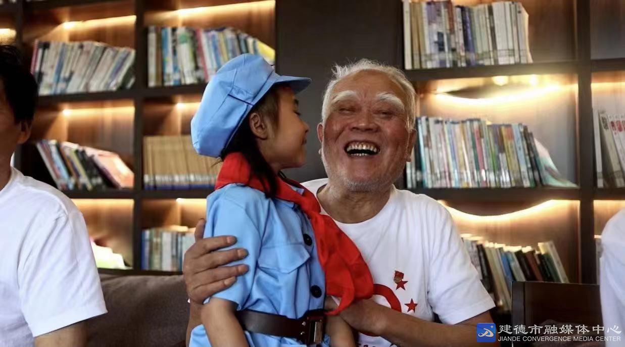 整個活動分為五個階段,一開場,大家在社區(qū)黨委書記柯丹的帶領(lǐng)下,集體重溫入黨誓詞。接下來,是嚴(yán)州幼兒園的小朋友們帶來的“慶祝建黨100載”快板和“童心向黨”歌唱的精彩表演。緊接著,小朋友們向50年黨齡的老黨員爺爺們鞠躬致敬并帶上大紅花。隨后,社區(qū)百歲老人孫爺爺現(xiàn)場親手揮毫潑墨,寫下“建黨百年 不忘初心”,為黨獻上最真摯的祝福。最后,數(shù)位老黨員爺爺上臺分享了自己年輕時的事跡,讓在場了小朋友們明白了現(xiàn)在的幸福生活是老一輩革命先烈用血肉拼搏出來的,以后一定要更加孝敬長輩,努力學(xué)習(xí)。