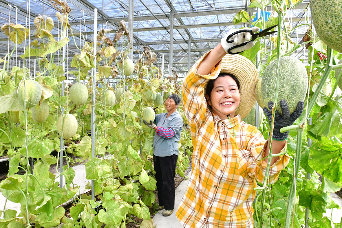 9月7日,在位于蓮花鎮(zhèn)昴畈村的戴農(nóng)富農(nóng)博園內(nèi),果農(nóng)們正忙著采摘網(wǎng)紋瓜。今年,該園種植了7000多株優(yōu)良的網(wǎng)紋瓜秧苗,采用無土基質(zhì)種植、肥水一體化栽培等現(xiàn)代農(nóng)業(yè)管理技術(shù),目前已喜獲豐收,預(yù)計(jì)總產(chǎn)量可達(dá)2萬多公斤。