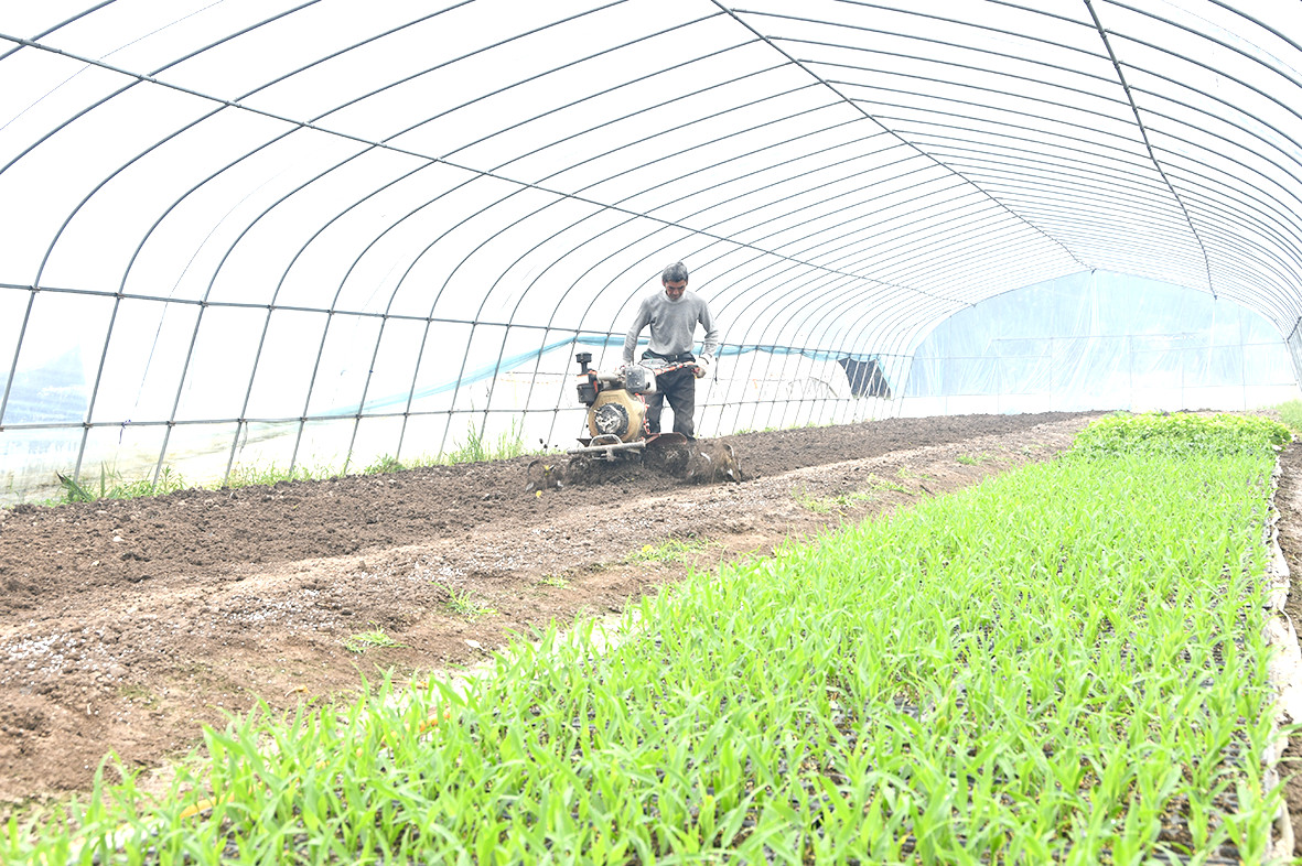 眼下正值春耕時(shí)節(jié),勤勞的農(nóng)戶們?nèi)耐度朐谔镩g地頭,搶農(nóng)時(shí)整地塊,掀起了春耕春種的熱潮。圖為正在航頭鎮(zhèn)黃木岡村種植基地的大棚里,農(nóng)機(jī)手正駕駛微型旋耕機(jī)進(jìn)行耕地作業(yè)。