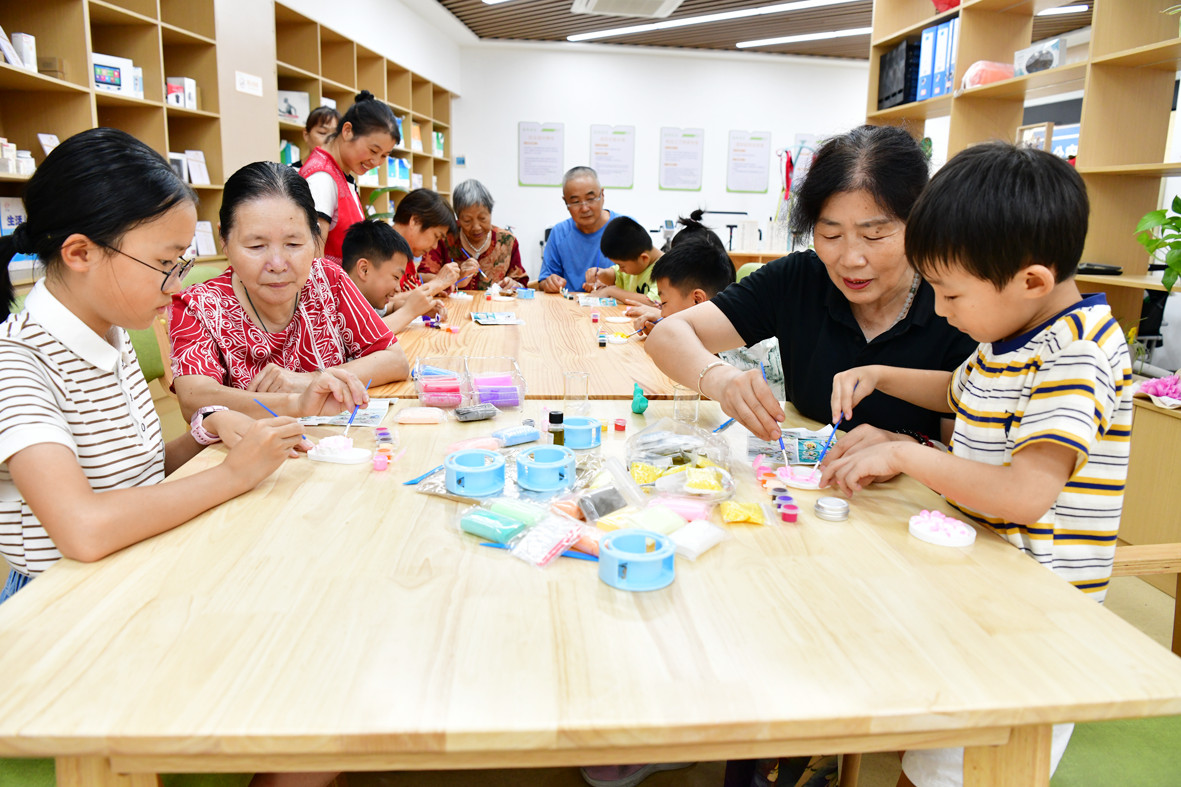 自2024年8月開始,新安江街道府西社區(qū)每周四都會組織轄區(qū)內(nèi)的“一老一小”群體,開展手工編織、繪畫、做游戲、剪紙等活動,不僅給他們的生活增添了樂趣,也及時(shí)解決了老人與孩子在生活上遇到的一些小困難。圖為老人與孩子們正在社區(qū)志愿者的指導(dǎo)下,用畫筆給石膏娃娃上色。