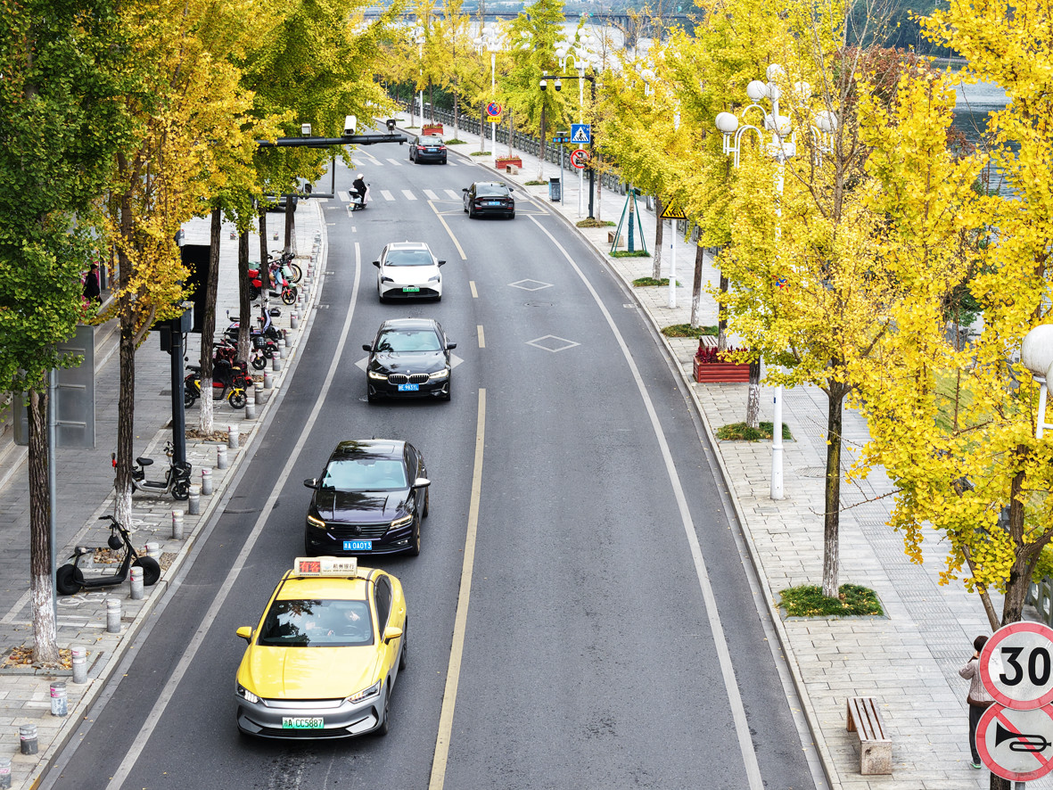 11月18日,記者用無(wú)人機(jī)俯瞰新安江主城區(qū)江濱路,只見(jiàn)道路兩側(cè)銀杏樹(shù)已披上了“黃金甲”,煞是好看。據(jù)了解,每年11月中下旬是銀杏的最佳觀賞期,我市部分公園、道路及綠地等處均種有銀杏,可供市民拍照打卡。