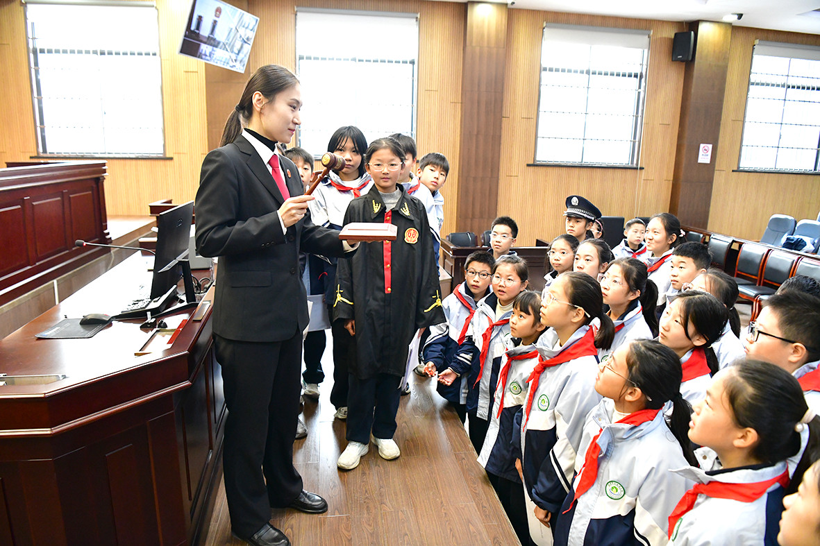 隨著“12·4”全國(guó)憲法日的臨近,日前,市法院會(huì)同月亮灣小學(xué)聯(lián)合開(kāi)展憲法知識(shí)宣傳教育活動(dòng)。在法庭宣講員和老師的帶領(lǐng)下,學(xué)生們參觀了辦案區(qū)域、刑事審判法庭和羈押室,還參與了模擬法庭等普法教育活動(dòng),不僅增強(qiáng)了大家的法治意識(shí),也為他們的健康成長(zhǎng)注入了法治正能量。