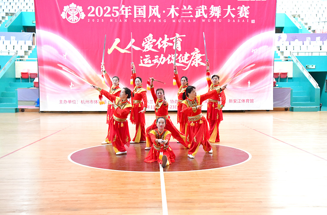 11月22日至23日,由杭州市體育局主辦、杭州市木蘭協(xié)會(huì)承辦的2025年國風(fēng)·木蘭武舞大賽在新安江體育館舉行,來自杭州地區(qū)的14支代表隊(duì)近200名選手分別參加了規(guī)定套路與自選套路兩個(gè)項(xiàng)目角逐。據(jù)悉,本次活動(dòng)以“人人愛體育 運(yùn)動(dòng)促健康”為主題,旨在更有效地提升、推動(dòng)和傳承木蘭拳運(yùn)動(dòng)健康發(fā)展,促進(jìn)全民健身運(yùn)動(dòng)的深入開展。