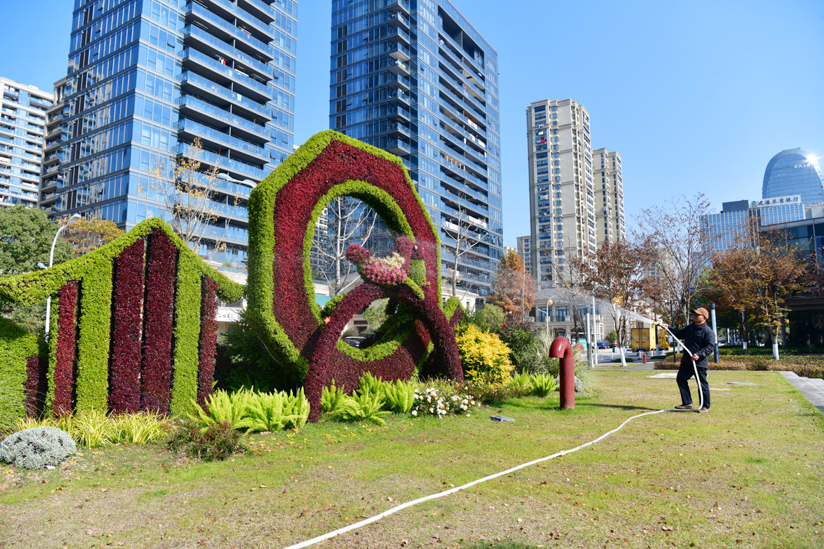 為應(yīng)對入冬以來持續(xù)晴多雨少天氣影響,市政園林管理部門加強對城市綠化植物實施精準(zhǔn)施肥、科學(xué)澆灌、病蟲害防控等措施,確保綠化植物安全越冬。圖為養(yǎng)護工人正在對新安江主城區(qū)江濱路一處綠化景觀小品進行澆水保濕管理。