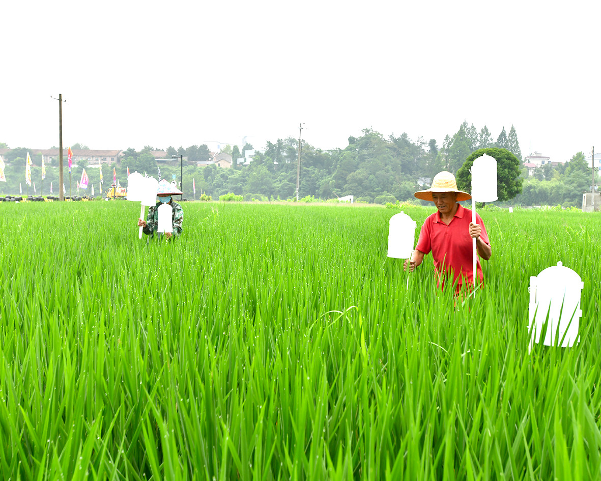 近年來,壽昌鎮(zhèn)積極推廣綠色種植模式,通過在田間安裝誘蟲板、誘捕器等綠色防控設施,減少化學農(nóng)藥用量,有效提高水稻品質、改善生態(tài)環(huán)境,助力農(nóng)業(yè)增產(chǎn)、農(nóng)民增收。圖為該鎮(zhèn)桂花村村民正在稻田里安裝新型飛蛾誘捕器。
