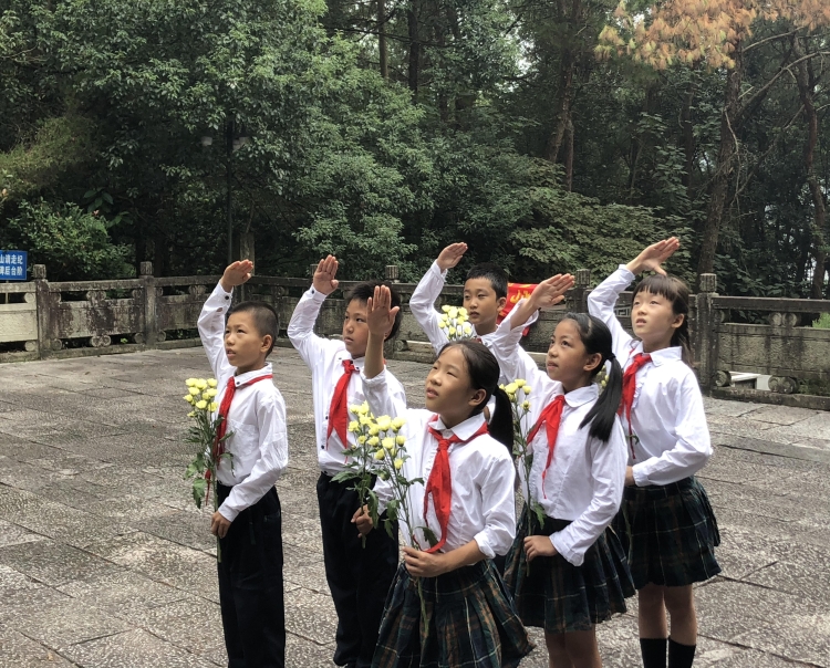 9月22日,市實(shí)驗(yàn)小學(xué)四(2)班向日葵小分隊(duì)開展“紅色的記憶”假日小隊(duì)活動(dòng)。隊(duì)員們來到革命烈士紀(jì)念碑,觀看“建德革命斗爭史簡介”和“建德烈士英名錄”,向烈士敬獻(xiàn)菊花,行少先隊(duì)禮。(通訊員 林科宏)