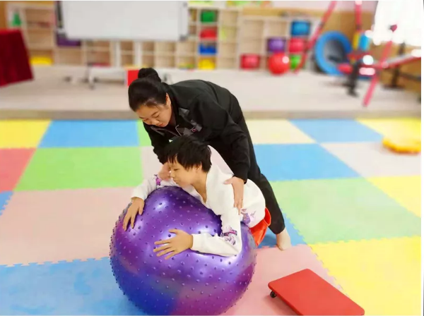 感統(tǒng)訓(xùn)練課對(duì)萱萱的幫助最大,可是也最難。有特教專業(yè)知識(shí)的王蓉老師總是鼓勵(lì)萱萱:“加油!”“堅(jiān)持一下!”“再來(lái)一個(gè)!”“你很棒!”“你真厲害!”“你做到了!”加油聲還引來(lái)一群好奇的小伙伴。