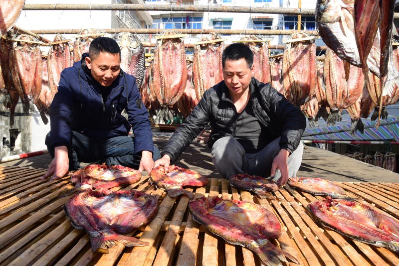 近日,大洋鎮(zhèn)漁民錢(qián)雪來(lái)趁著晴好天氣,忙著晾曬自制的青魚(yú)干。每到春節(jié)前,錢(qián)雪來(lái)都會(huì)捕撈四五百條青魚(yú)、草魚(yú)及鯉魚(yú),并制作成傳統(tǒng)風(fēng)味的魚(yú)干,銷(xiāo)往杭州、上海及本地等地市場(chǎng),深受消費(fèi)者的青睞,經(jīng)濟(jì)效益十分可觀。