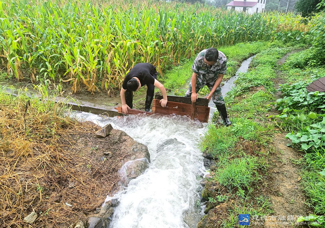 7月24日,連續(xù)強降雨導致大同鎮(zhèn)部分溝渠內水流溢出倒灌進農(nóng)田,農(nóng)田內水位大大超出了正常水平,且上漲迅速。大同鎮(zhèn)各村黨組織立即行動,動員青年黨員和村民骨干組建抗洪搶險隊伍,幫助農(nóng)戶疏通溝渠、分流積水,避免農(nóng)作物因長時間浸泡導致根部腐爛。80余名黨員奮力搶工,清理枯枝疏通溝渠,豎起檔板改變水流方向,加速積水外排。短短兩小時后,農(nóng)田內水位均下降到正常水平。