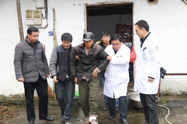 近日,身在外地開(kāi)會(huì)的市一醫(yī)院院長(zhǎng)鐘澤得知一消息:一位身居偏遠(yuǎn)山村的老人的腿深度潰爛,家貧如洗,無(wú)錢醫(yī)治,無(wú)人照顧……于是,市一醫(yī)院臨時(shí)醫(yī)療隊(duì)組建了,由該院副院長(zhǎng)、骨科主任醫(yī)師柳振華帶領(lǐng)普外科主任許海林等驅(qū)車1個(gè)多小時(shí)前往老人居住的山村……