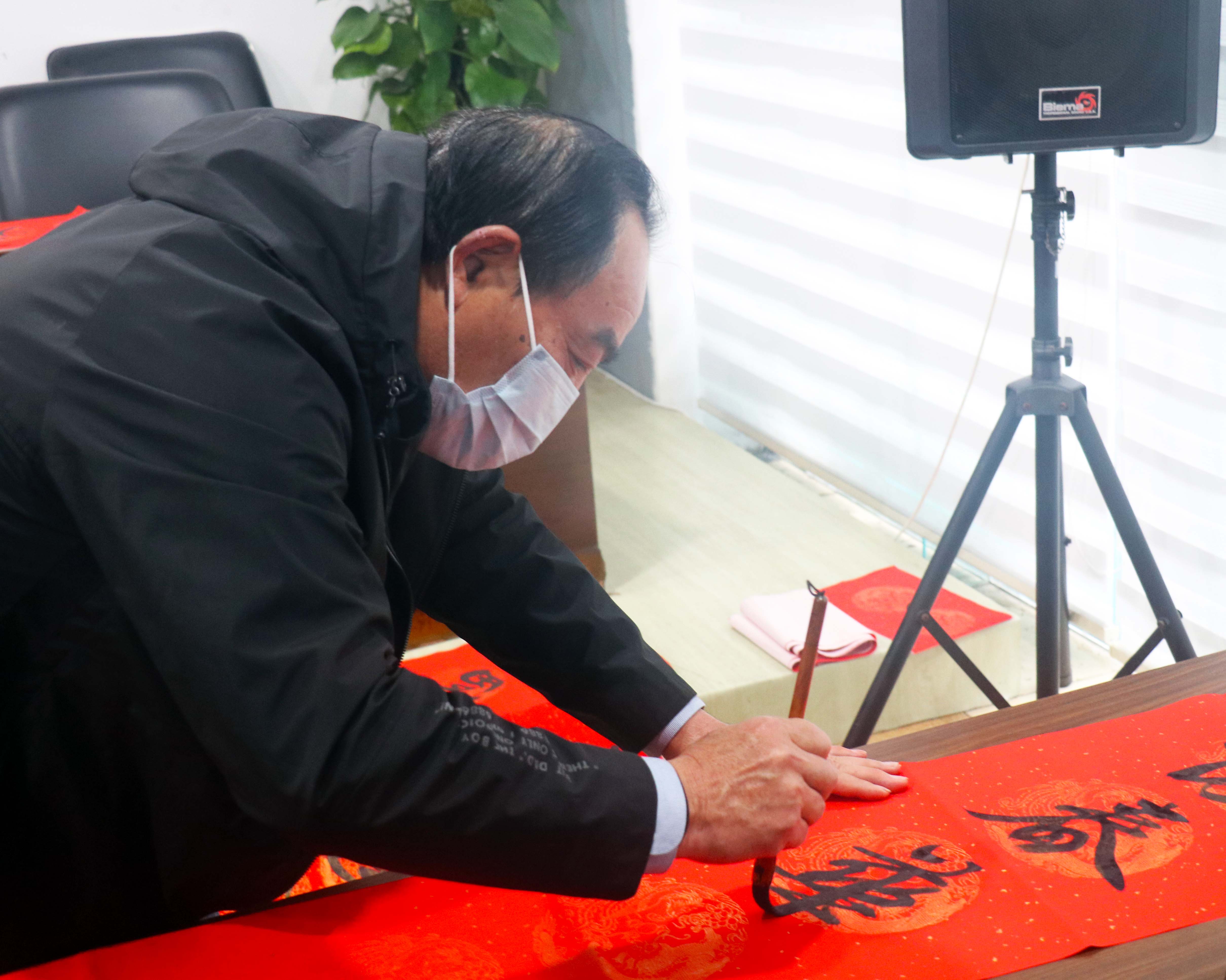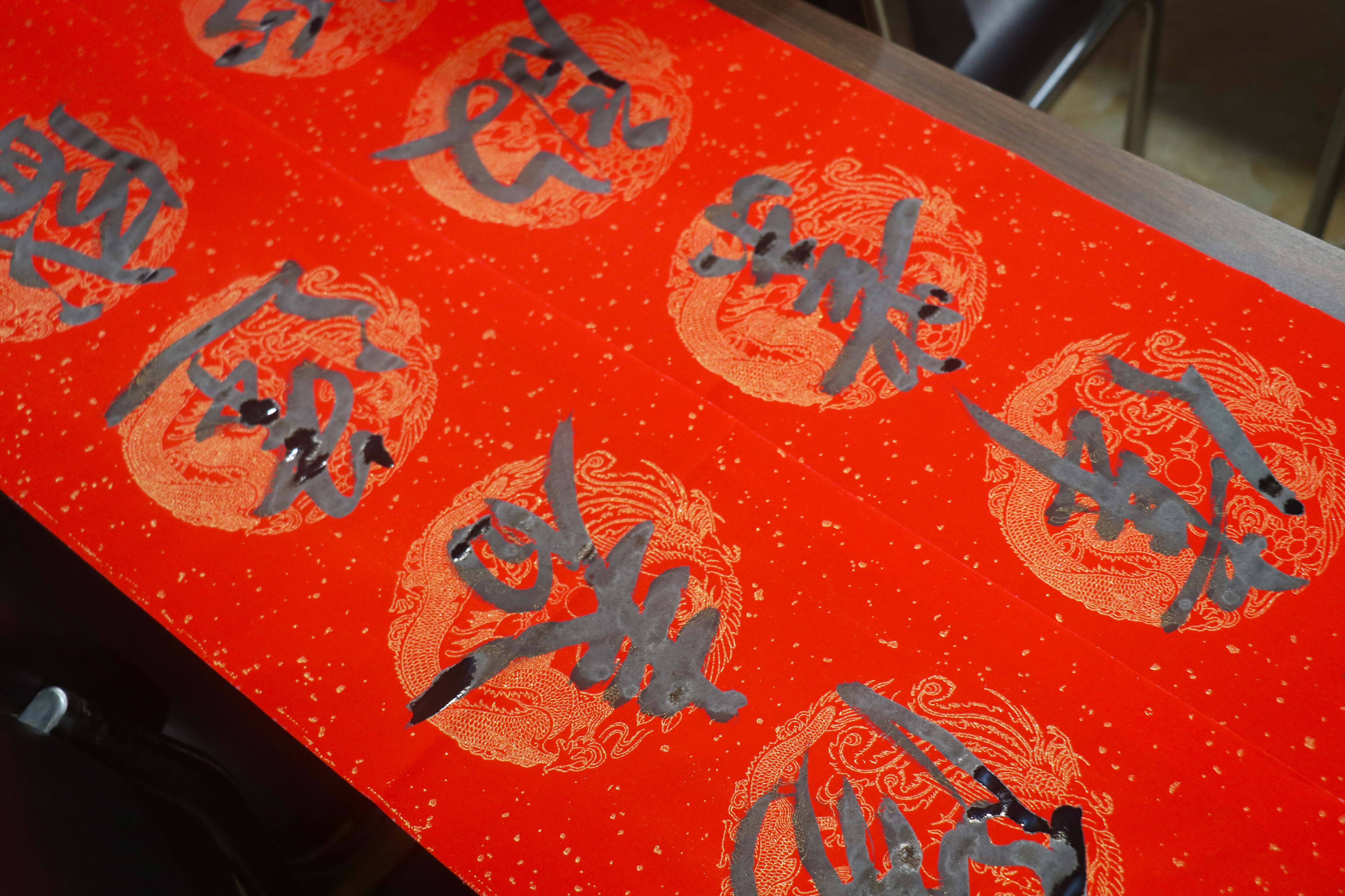 活動現(xiàn)場,8名書法愛好者揮毫潑墨,用筆墨紙硯為市民寫下新春祝福。短短三個小時,上百幅對聯(lián)和福字順利完成,為現(xiàn)場帶來了濃濃的節(jié)日氣息。據了解,這些春聯(lián)將在宜居建德客戶端中以活動的形式發(fā)放給市民,為節(jié)日增添喜氣。