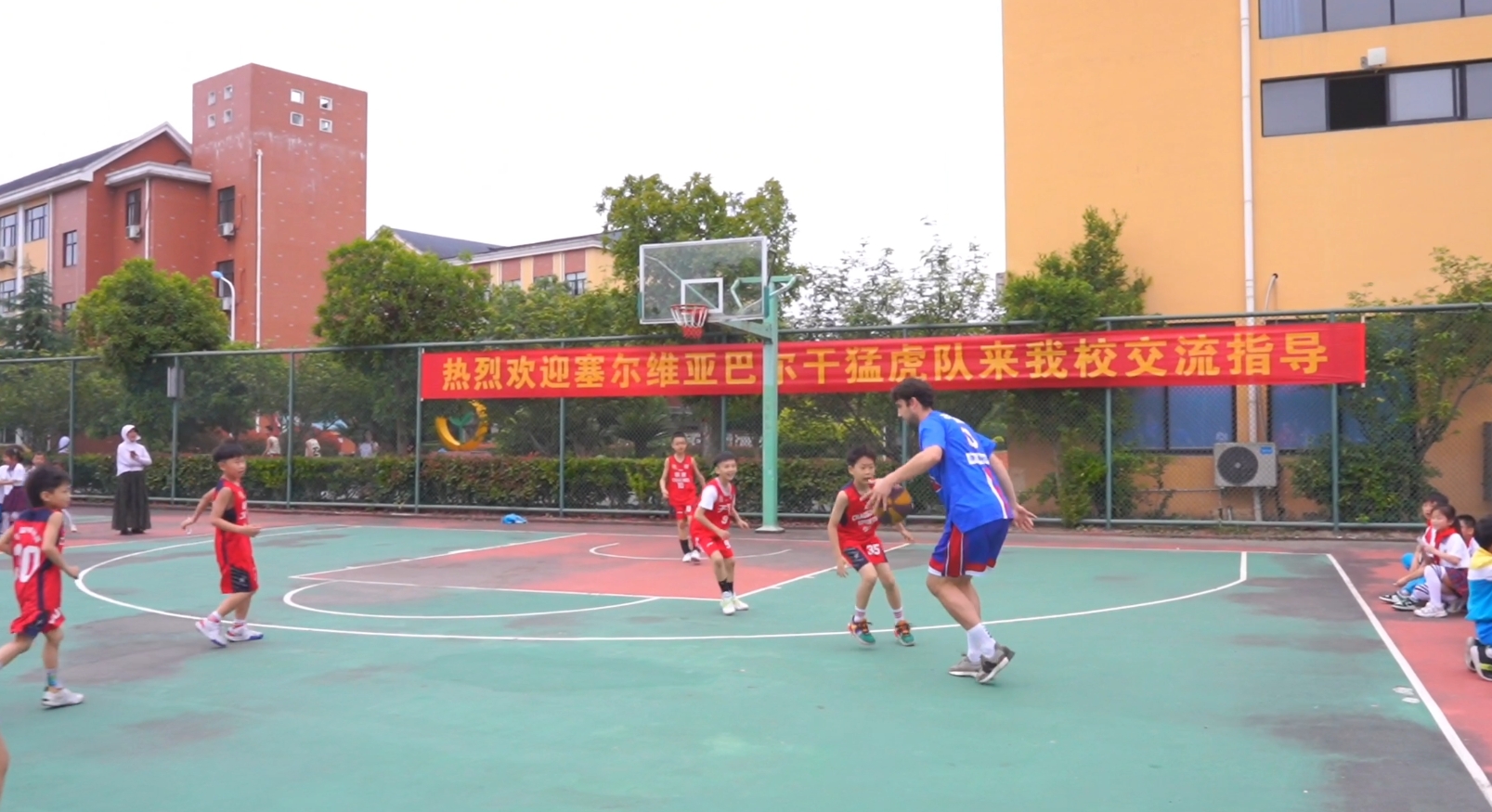 壽昌一小是我市的籃球傳統(tǒng)強隊,學(xué)校開設(shè)了籃球相關(guān)的課程,被評為全國青少年籃球教育特色學(xué)校?;顒?/span>現(xiàn)場,壽昌一小的小球員們手捧籃球,向外國球員們展示了學(xué)校特色的籃球操。巴爾干猛虎隊的球員們與孩子們簽名互動,向他們贈送了象征和平的小籃球,還以嘉賓的身份與小球員同場競技,指導(dǎo)小球員們的球技,助力青少年籃球發(fā)展。