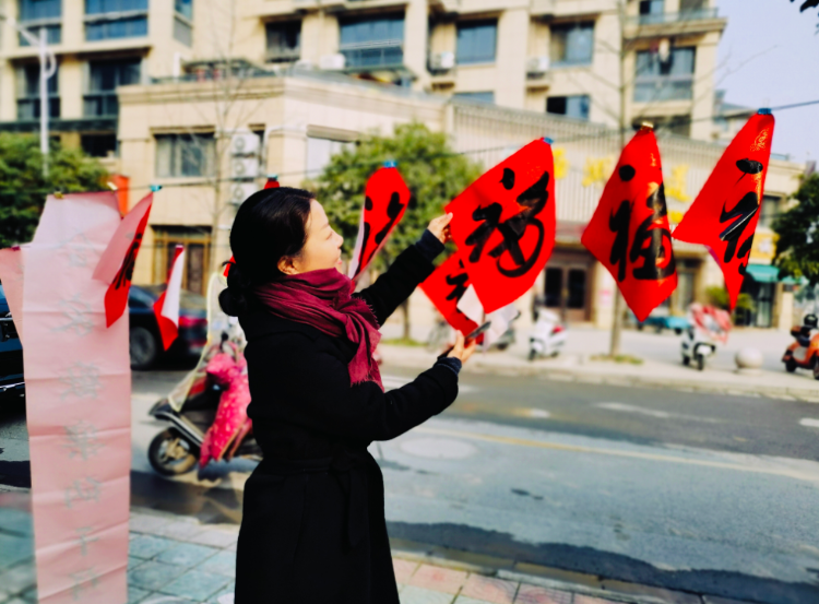 春來江水綠如藍(lán),日出江花紅似火;春滿人間四季艷,福臨小院合家歡......書法家們展紙伏案,揮毫潑墨,撰春聯(lián)、寫“?!弊郑`楷行草,揮灑自如。不一會兒,一副副墨走龍蛇的春聯(lián)、一個(gè)個(gè)活靈活現(xiàn)的“?!弊周S然紙上。居民們自覺排隊(duì),耐心等待書法家書寫,社區(qū)兩委和黨員志愿者幫助居民朋友把寫好的春聯(lián)和“?!弊謶覓炝罆瘛D玫叫膬x春聯(lián)后,居民喜笑顏開地說:“感謝書法家來為我們寫春聯(lián),我們就喜歡用毛筆寫出來的春聯(lián),這才更有年味,也非常感謝社區(qū)為老百姓免費(fèi)送春聯(lián)?!?/p>