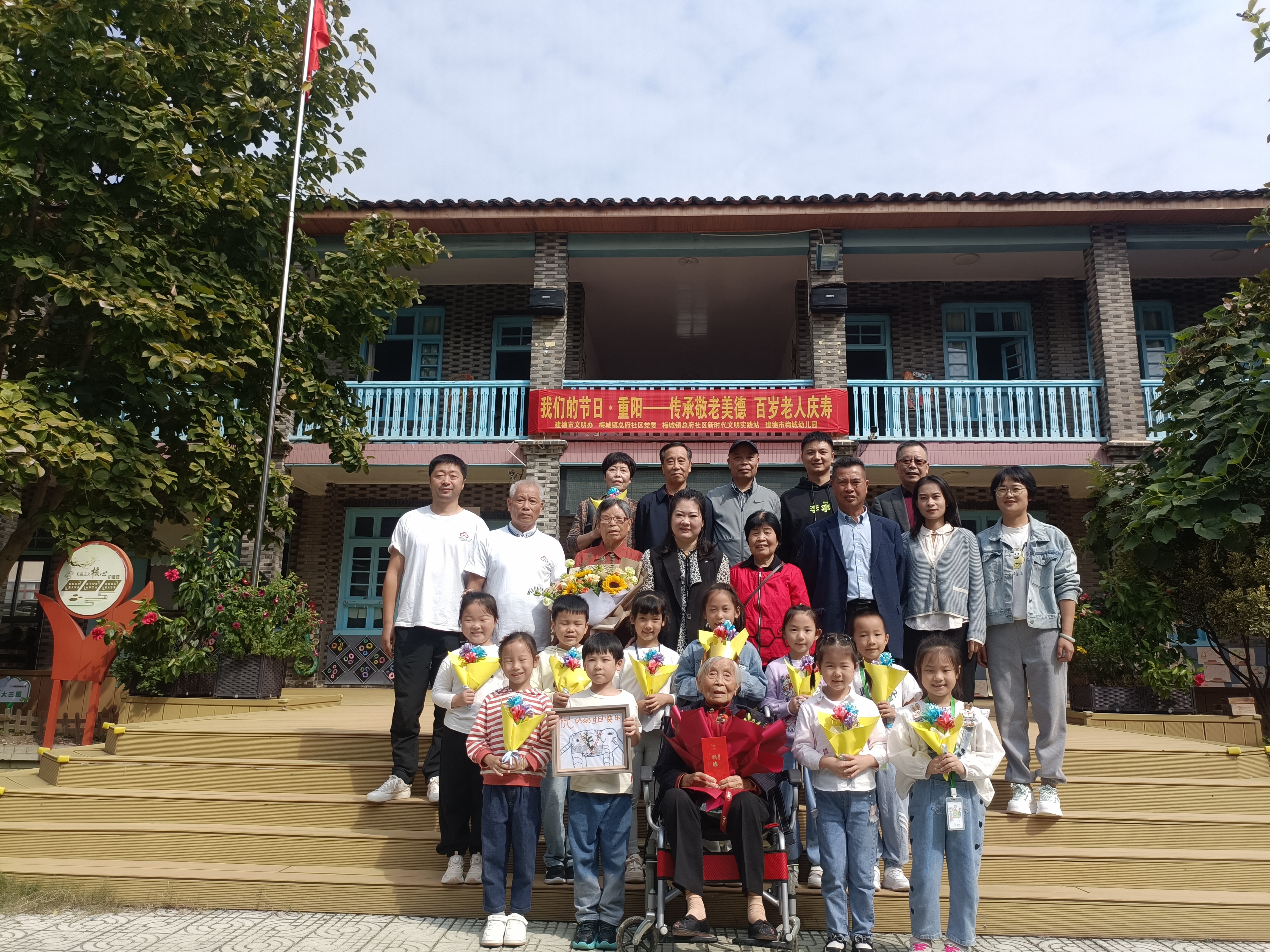 曾海清老師是梅城幼兒園的退休教師,是一位默默耕耘、傾注心血的偉大幼教教育者。她幾十年如一日地投入教育事業(yè),給予孩子們深厚的關愛和教育。為表達我們對曾海清老人的尊敬和祝福,10月12日上午,總府社區(qū)新時代文明實踐站與梅城幼兒園攜手合作共同策劃組織“我們的節(jié)日?重陽——傳承敬老美德,百歲老人慶壽”活動,旨在共同見證曾海清老人百歲壽辰的喜悅與感動。