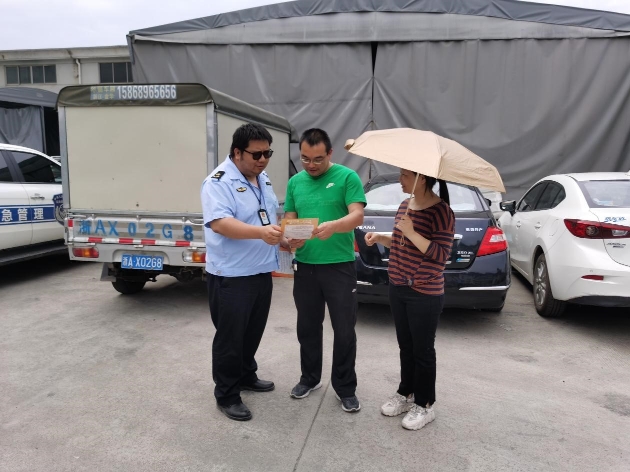 圖為執(zhí)法人員向廠中廠出租方發(fā)放宣傳單