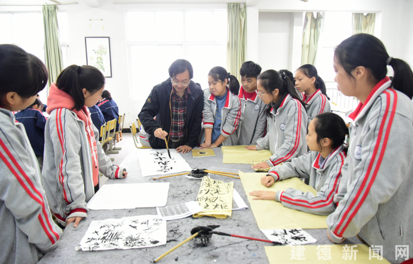 11月8日,在壽昌初級(jí)中學(xué)的書法室里,學(xué)生們正在老師的指導(dǎo)下,認(rèn)真練習(xí)書寫毛筆字。