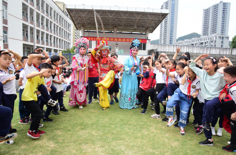 10月14日下午,市婺劇團(tuán)的十多名演職人員來到實(shí)驗(yàn)小學(xué),為學(xué)生帶去金猴鬧春、天女散花、三請樊梨花等傳統(tǒng)婺劇的小節(jié)目小片段。演員們一場場精彩的戲曲表演,贏得師生們的熱烈掌聲,有效地弘揚(yáng)地方戲曲文化,豐富校園精神文化生活。