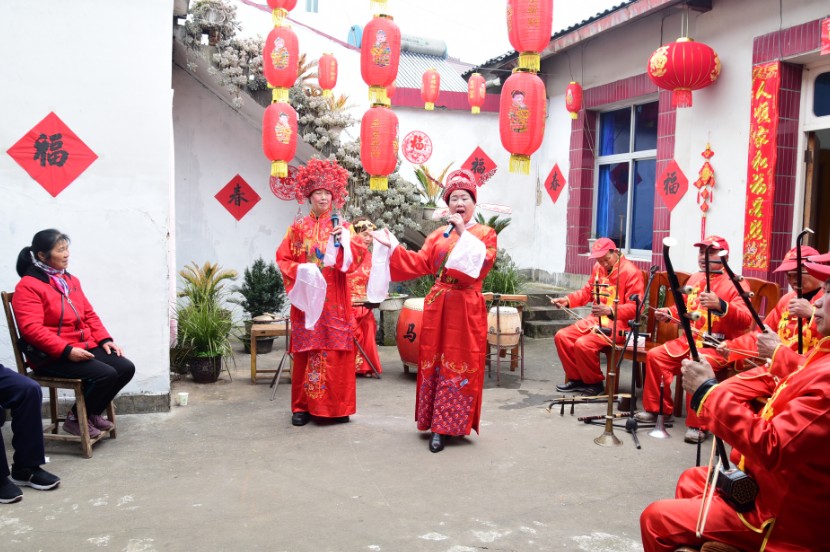 2月15日,下涯鎮(zhèn)馬目坐唱班的10多名婺劇票友歡聚農(nóng)家小院,吹拉彈唱,演繹傳統(tǒng)婺劇經(jīng)典選段,并拍攝成視頻發(fā)到朋友圈里,與親朋好友同歡,傳遞新春喜樂(lè)。
