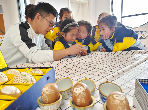 近日,更樓中心幼兒園以家長進課堂的形式開展了蛋雕亞運會吉祥物活動。一把雕刻刀、一支鉛筆、一個蛋殼,在孩子、家長的奇思妙想下變身為亞運會吉祥物,在互動、體驗中一起表達對亞運會的美好祝愿。