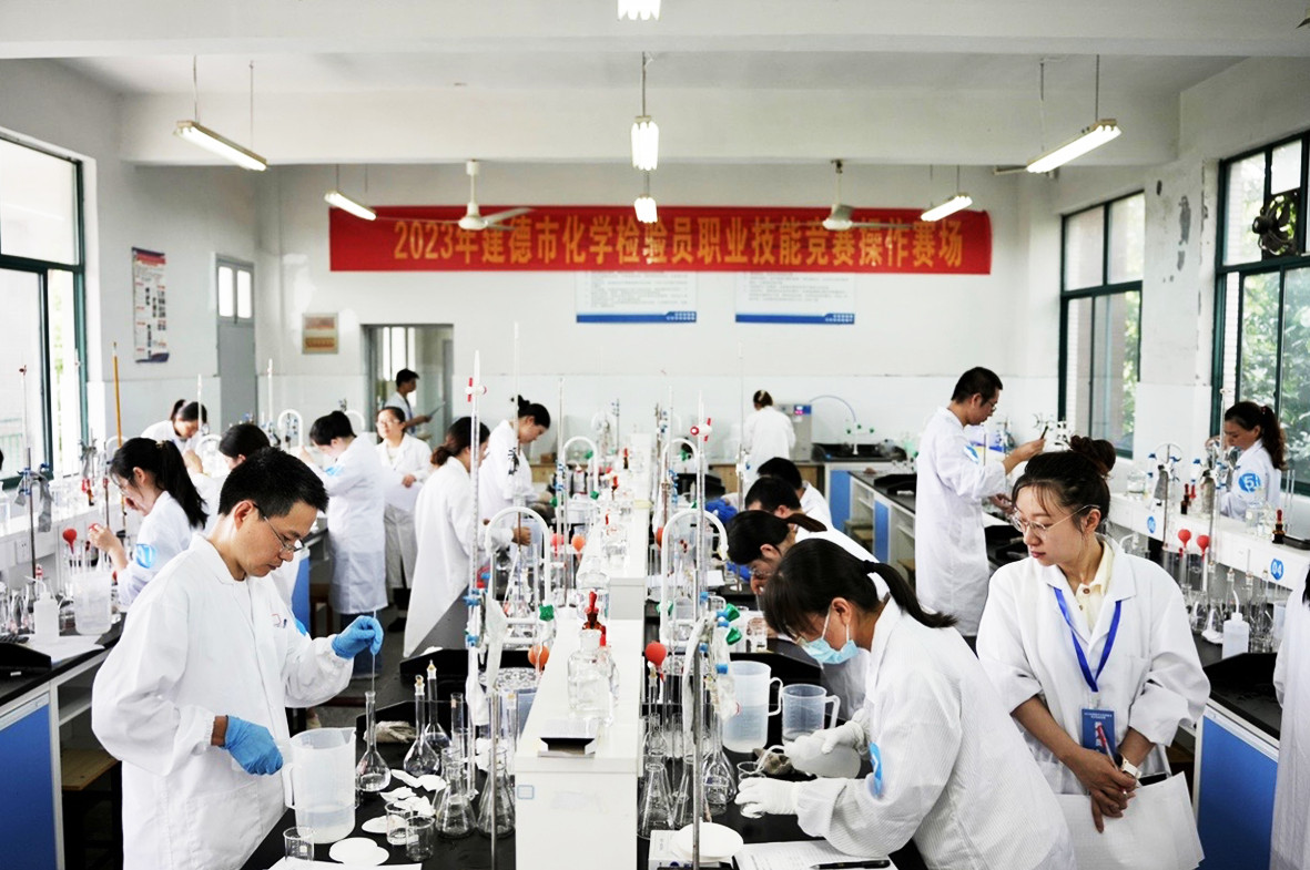 日前,建德市化學檢驗員職業(yè)技能競賽在市工業(yè)技校舉行。來自新安化工、格林生物等我市企業(yè)的十支代表隊42位職工同臺競技,開展實力對決。