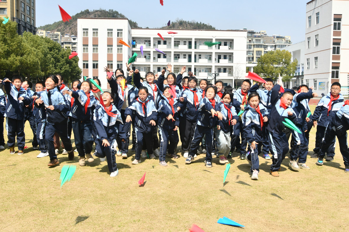 近日,市實驗小學舉行“陽光向上強運動 身心健康奔未來”心理健康教育月活動,推出放飛紙飛機、做排球操、做課間操等豐富多彩的文體運動,讓學生們在愉悅、輕松、活潑的環(huán)境中調節(jié)自身的心理壓力,以良好的身心狀態(tài)面對學習生活。圖為學生在操場上開心地投擲五彩紙飛機,放飛春天的夢想。