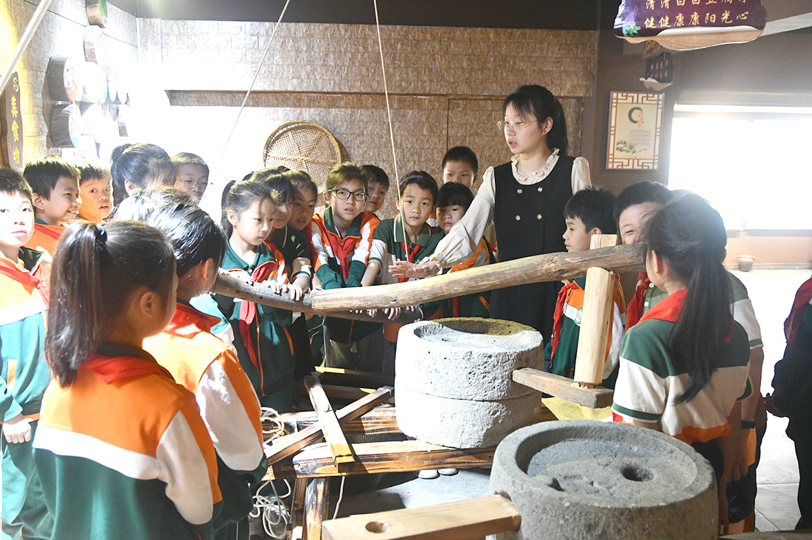 近年來,航頭中心小學(xué)利用校內(nèi)農(nóng)耕博物館這一科普基地,將鄉(xiāng)土農(nóng)耕文化融入教育教學(xué)中,培養(yǎng)學(xué)生們愛家鄉(xiāng)愛勞動的意識,讓鄉(xiāng)土文化展現(xiàn)獨特魅力與時代風采。圖為該校學(xué)生在老師帶領(lǐng)下,走進農(nóng)耕博物館參觀學(xué)習(xí)傳統(tǒng)農(nóng)耕以及現(xiàn)代農(nóng)業(yè)知識。