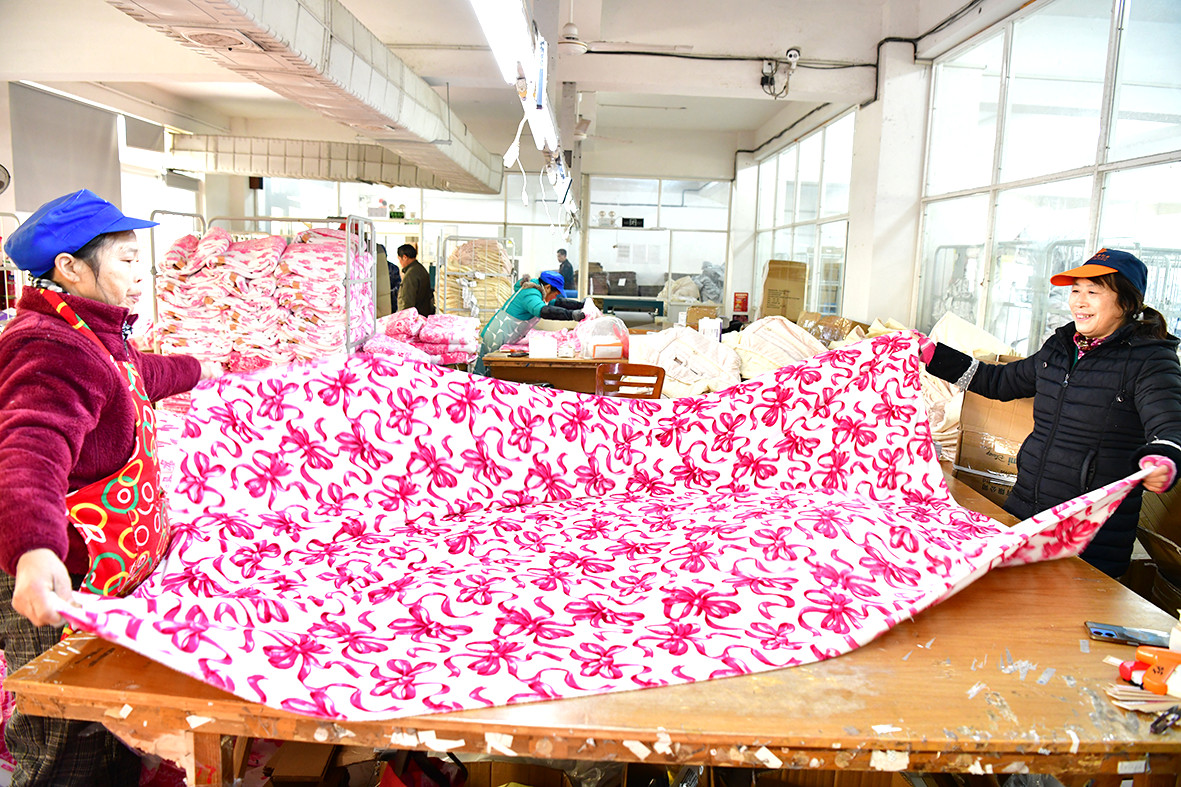 近年來(lái),建德市美爾泰紡織有限公司主動(dòng)迎合市場(chǎng)需求,積極研發(fā)生產(chǎn)綠色環(huán)保的嬰兒靠墊、蝴蝶枕、孕婦抱枕及中高端品牌毯子等家紡產(chǎn)品,頗受市場(chǎng)青睞,全年訂單不斷。圖為工人們正在生產(chǎn)車間內(nèi)制作多個(gè)品類的家紡訂單產(chǎn)品,力爭(zhēng)實(shí)現(xiàn)首季“開門紅”。