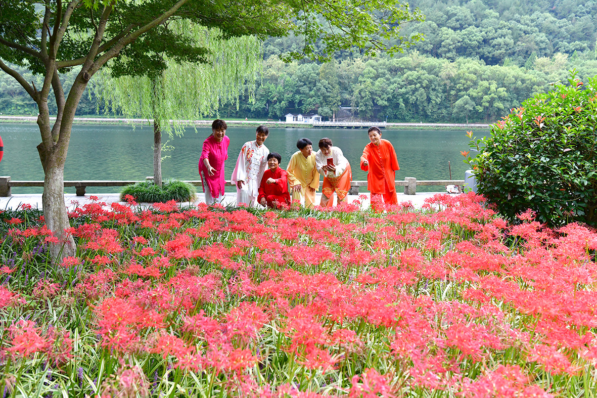 近期,新安江江濱公園里的彼岸花紛紛綻放出鮮艷奪目的花朵,吸引了眾多市民前來(lái)觀賞拍照。據(jù)了解,彼岸花學(xué)名“紅花石蒜”,別名“曼珠沙華”,是單子葉植物綱百合目石蒜科石蒜屬植物,于夏末秋初破土而出,花朵明亮秀麗。