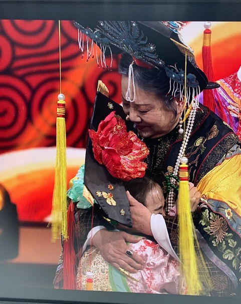 照片中,晴兒和老佛爺都身穿清朝古裝服,“祖孫”相見分外開心,晴兒抱著老佛爺當(dāng)即就哭了,畫面十分的感人。