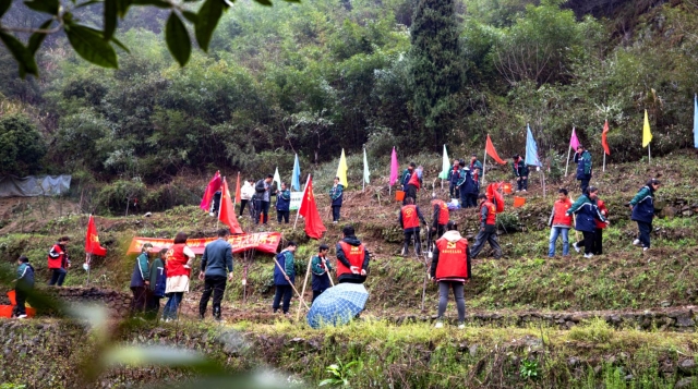 青云橋畔與桃花相約 植樹造林與文明攜手