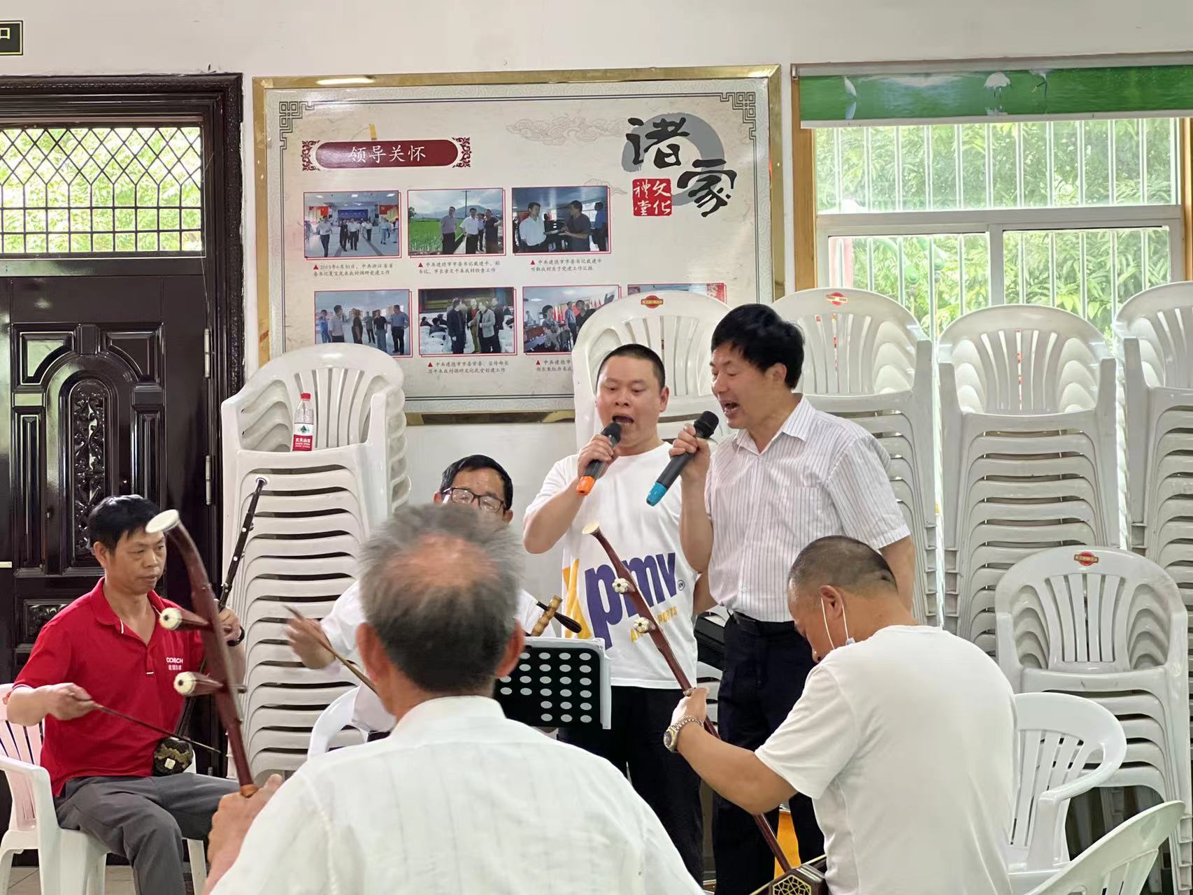 吹拉彈唱樣樣開花,諸家村文化禮堂內,村民們或手打著節(jié)拍、或舉起手機拍攝分享、或跟著合唱,開心地參與到這場別開生面的培訓活動中。