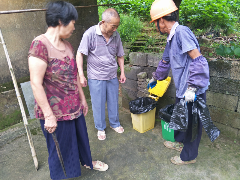為了解決“撤桶”給村民帶來垃圾投放不便的難題,前陵村想出了一個辦法:讓原先發(fā)放給農(nóng)戶的用于分類廚余垃圾和其他垃圾的垃圾桶從家中放置在門口,由農(nóng)戶將生活垃圾分類好投放到垃圾桶內(nèi),然后由保潔員每天上門清運垃圾。與此同時,村里“大張旗鼓”地開始了各類宣傳工作,在村宣傳欄張貼垃圾分類的知識和意義,在戶主大會上做動員工作,處處營造良好的垃圾分類氛圍,農(nóng)戶們也漸漸養(yǎng)成了定點投放的習(xí)慣。還有村干部有了工作心得:“我們只需要告訴鄉(xiāng)親們‘豬能吃的放進(jìn)綠桶,豬不吃的放進(jìn)黃桶’,大伙一聽就懂了!”
