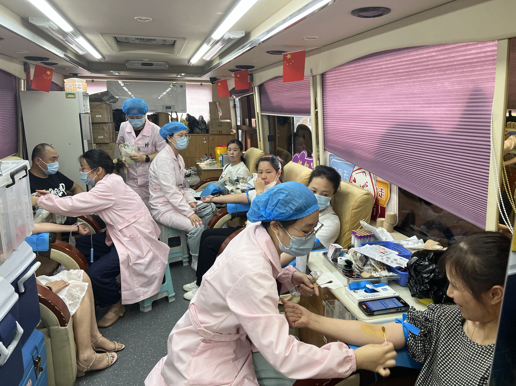 6月6日上午,建德血站的獻(xiàn)血車??吭趬鄄?zhèn)中山路十字路口,前來獻(xiàn)血的居民有序排隊,填寫相關(guān)資料,隨后依次進(jìn)入獻(xiàn)血車獻(xiàn)血。