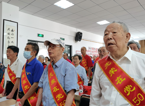 6月23日上午,羅桐社區(qū)舉辦以“紅色百年 初心如磐”為主題的慶“七一”活動暨“光榮在黨50周年”紀念章頒發(fā)儀式。羅桐社區(qū)共100余名在黨50周年老黨員參加儀式。